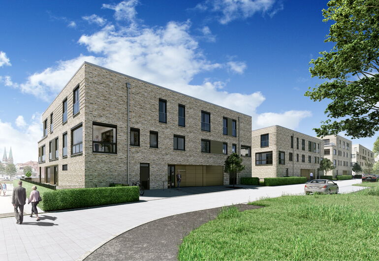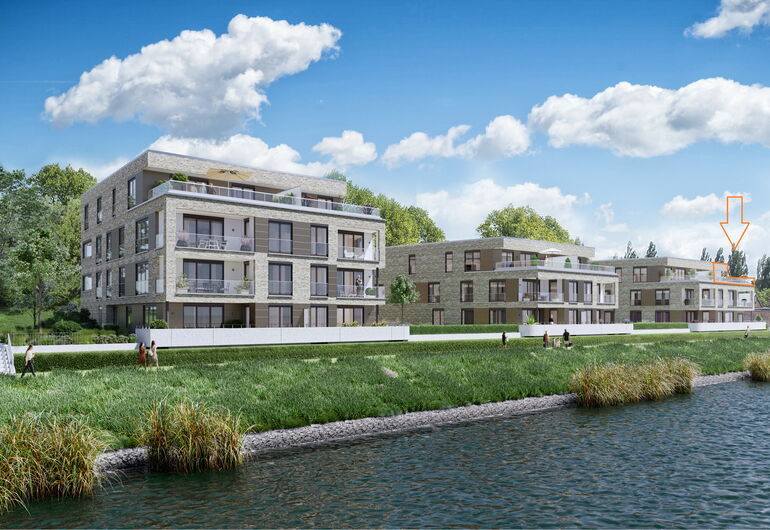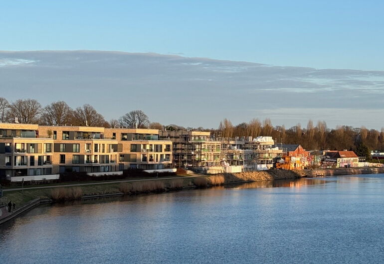 - Staffelgeschoss-Lage mit Blick auf die Kanaltrave und die Lübecker Altstadt